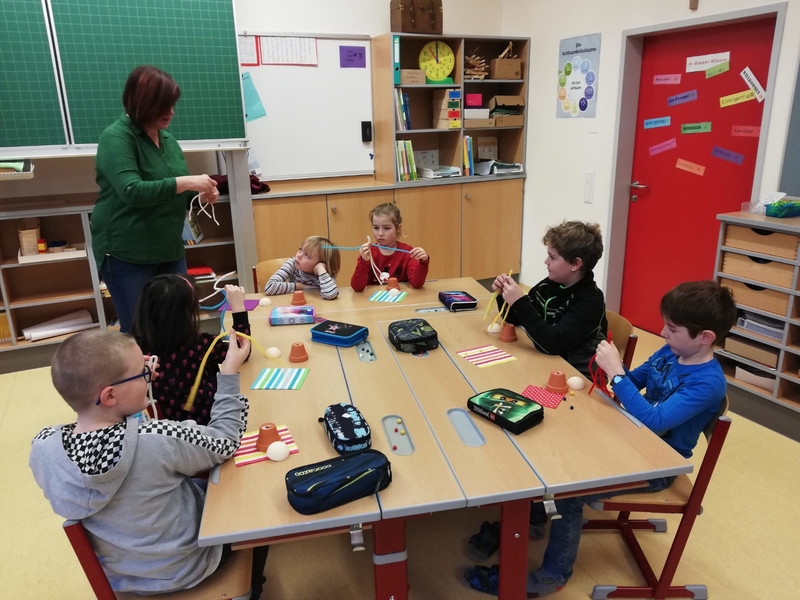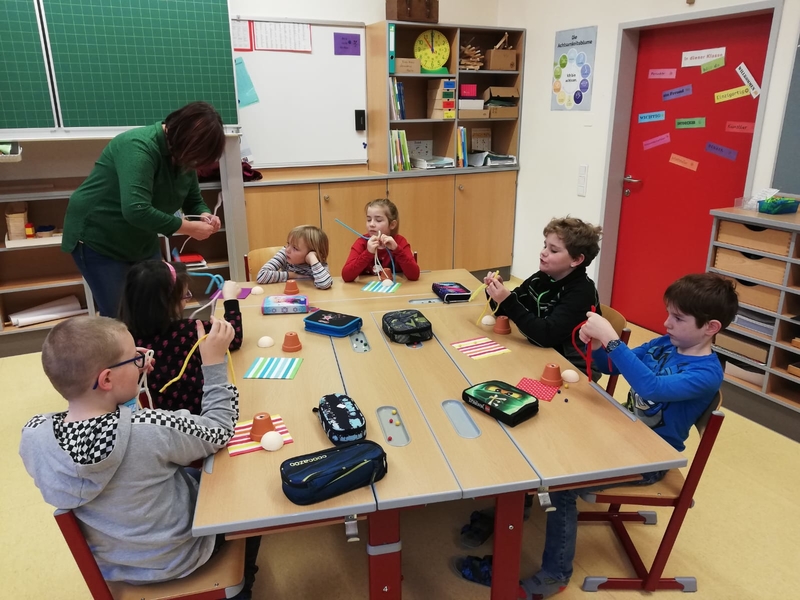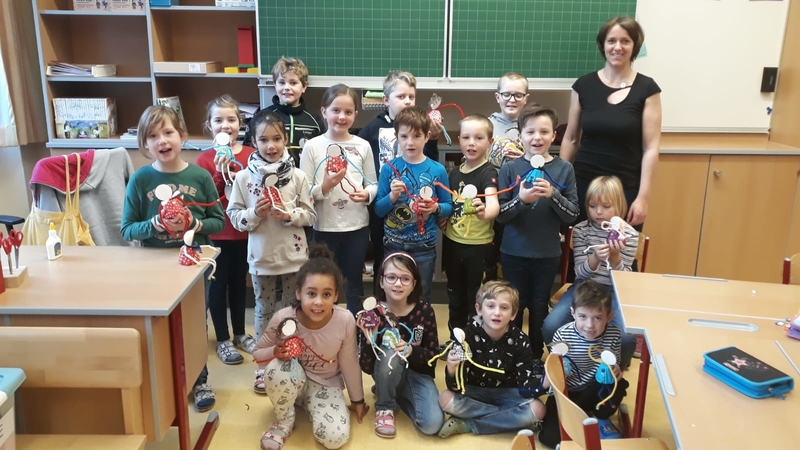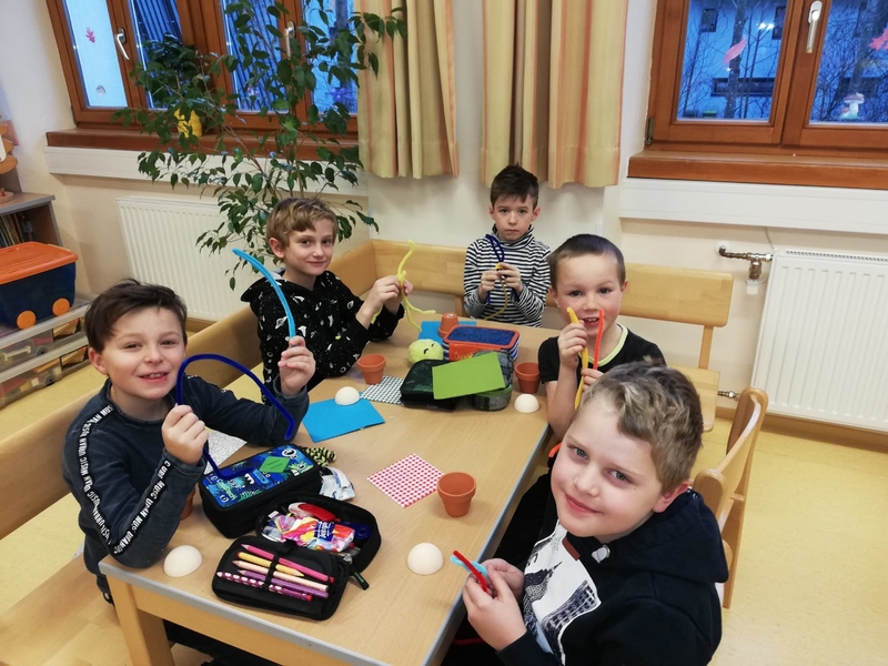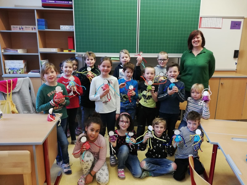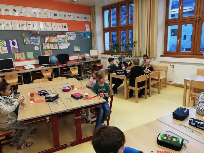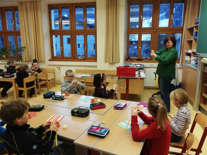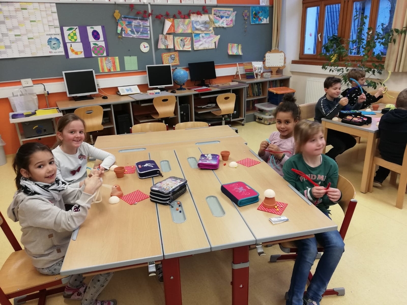 Gemeinsam mit Frau Fuetsch bastelten und probten die Kinder.