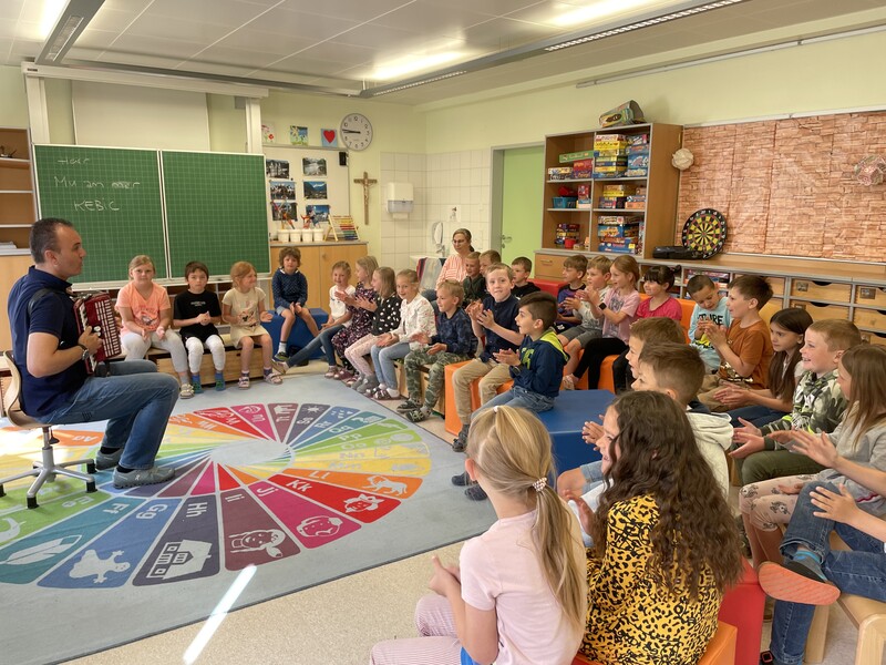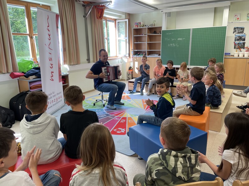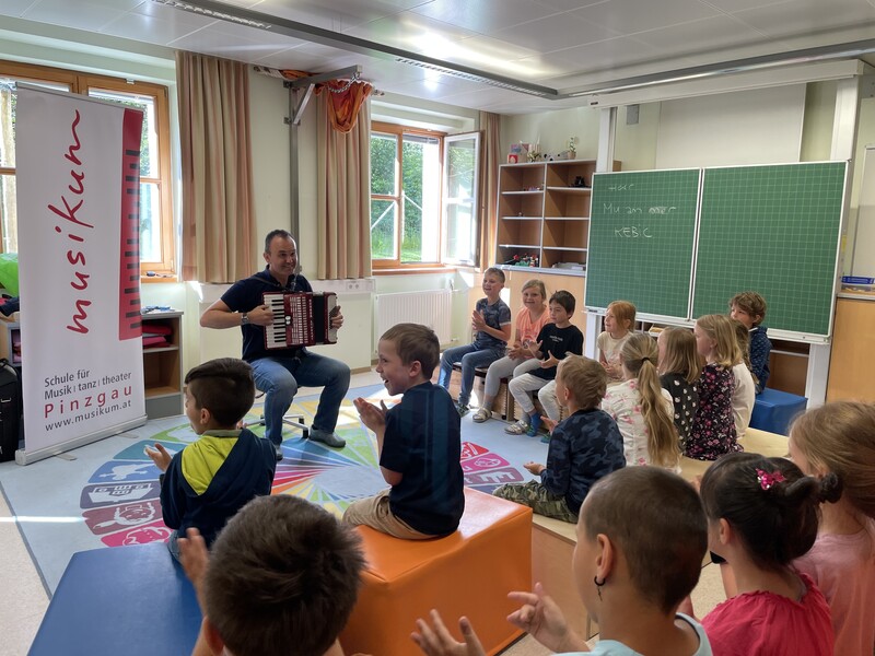 Der Akkordeonlehrer Herr Muamer Kebic vom Musikum Zell am See stellte allen Klassen das Akkordeon vor.