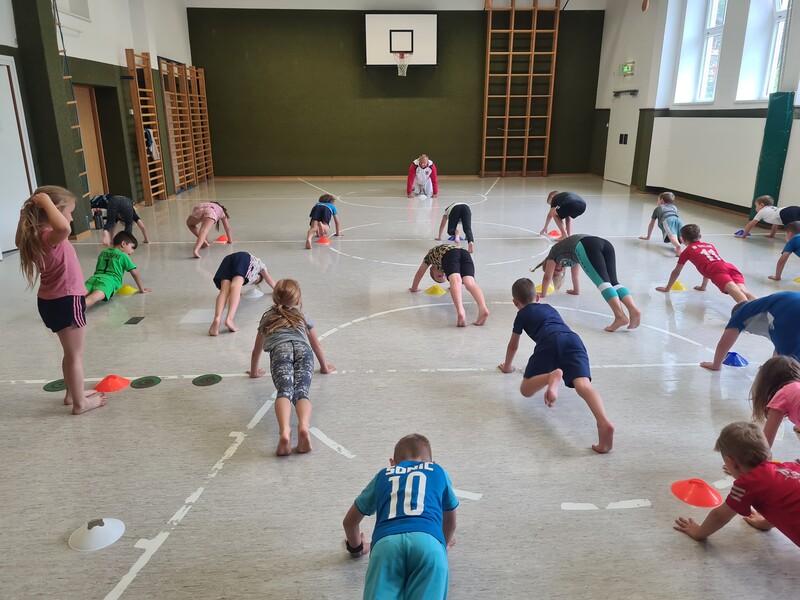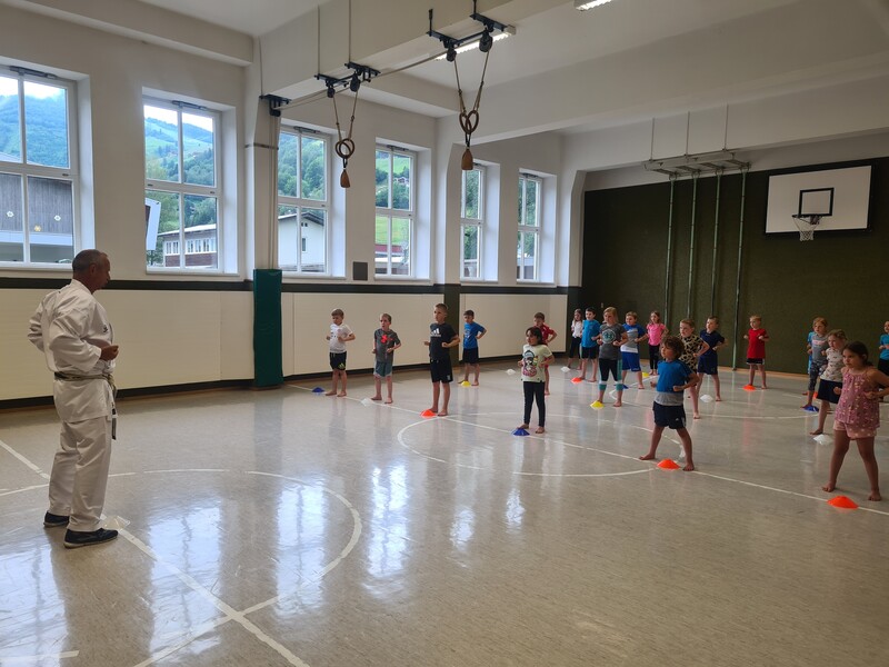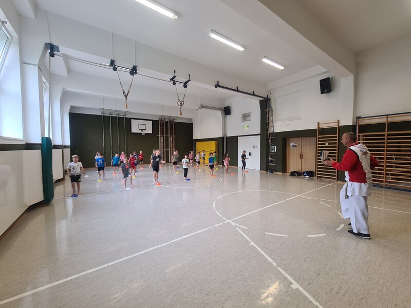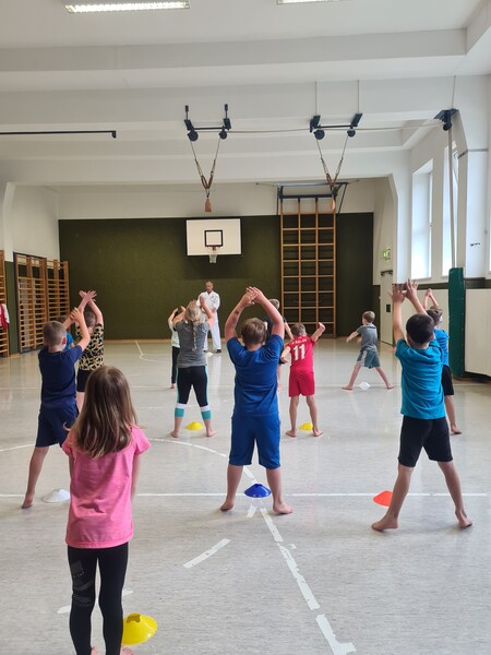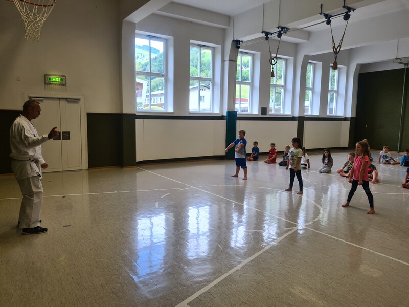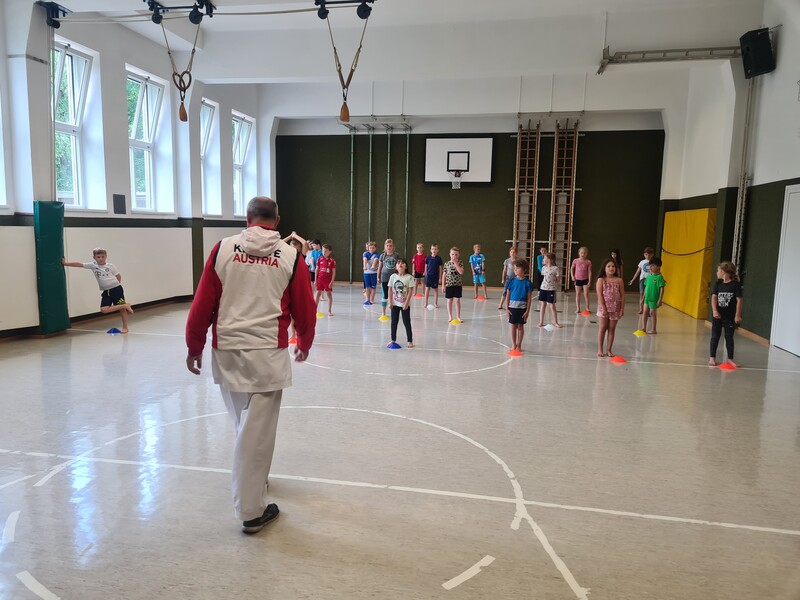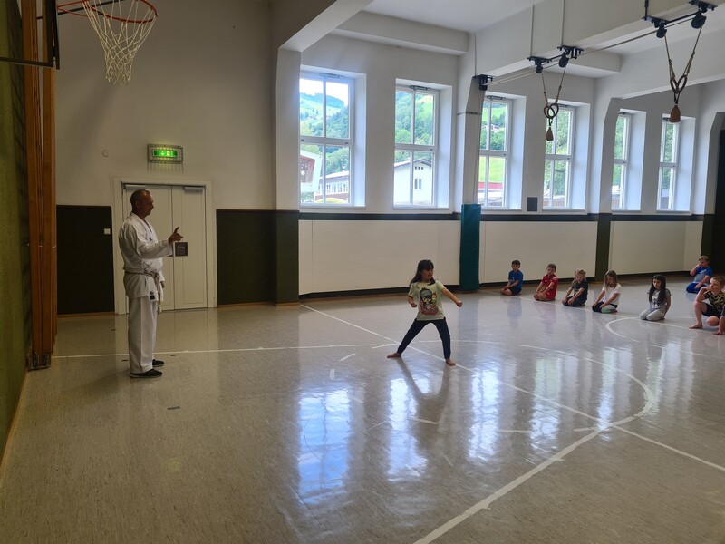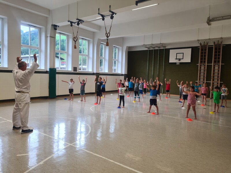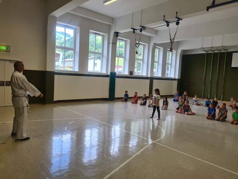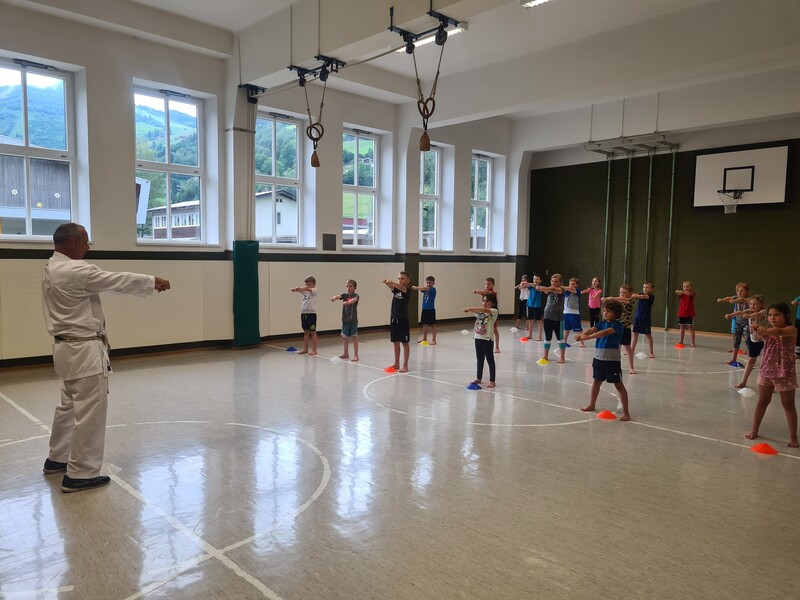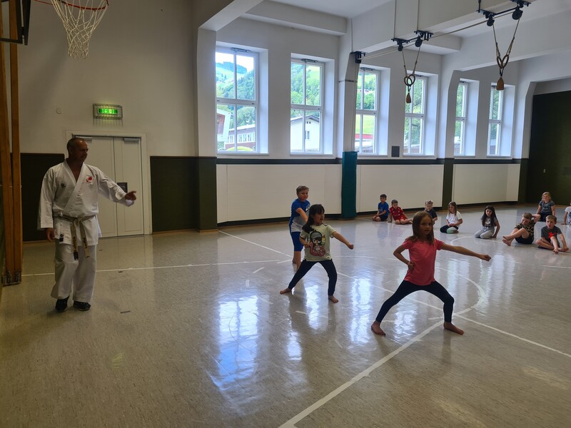 Kraft, Koordination und Disziplin waren bei der Karatestunde mit den 1. Klassen gefragt. Alle Kinder waren mit Eifer dabei und gaben ihr Bestes. Für ihre Sportlichkeit bekamen sie ein großes Lob. Es war echt cool!