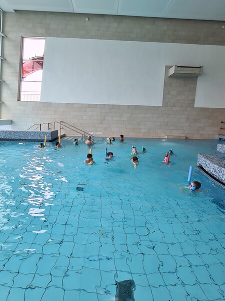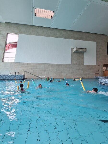 Gemeinsam mit Richard, unserem Schwimmtrainer, verbrachten wir lehrreiche und lustige Stunden im Schwimmbecken.