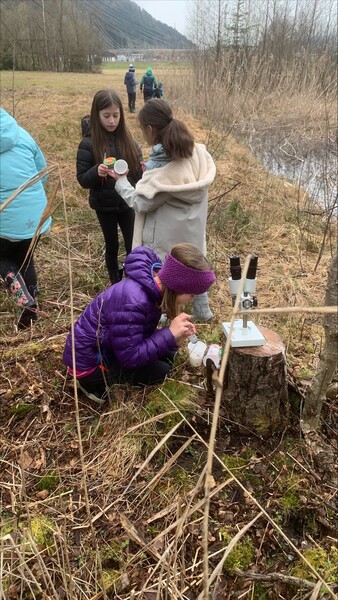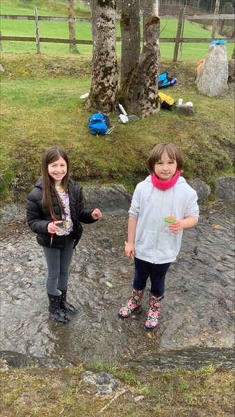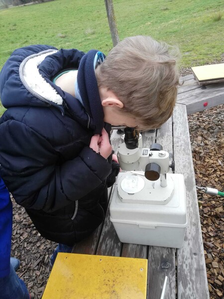 Im April fanden die Outdoortage zur Wasserschule mit den Nationalpark-Rangern statt. Die 3. Klassen erforschten ein stehendes und ein fließendes Gewässer. Ausgestattet mit Becherlupen, Mikroskopen und Bestimmungsbüchern machten wir uns auf den Weg. Dabei sammelten wir auch gleich den herumliegenden Müll auf dem Weg ein. Die Kinder fanden viele Wassertiere wie Eintagsfliegenlarven, Bachflohkrebse und Strudelwürmer. Diese untersuchten die Kinder sofort unter dem Mikroskop. Die Outdoortage machten allen viel Spaß. Nun wissen wir, was sich so in unseren Gewässern tummelt!